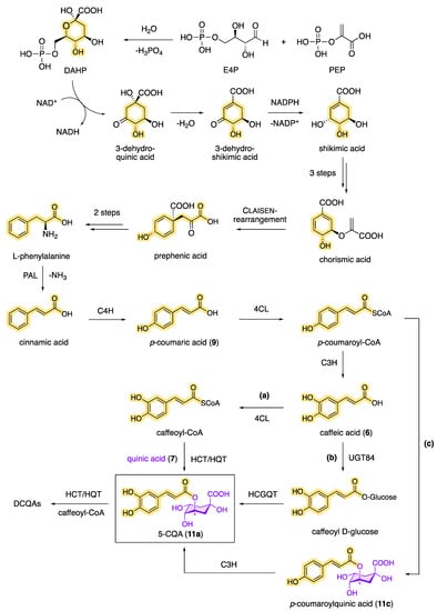 - Clifford, M.N.; Jaganath, I.B.; Ludwig, I.A.; Crozier, A. Chlorogenic acids and the acyl-quinic acids: Discovery, biosynthesis, bioavailability and bioactivity. Nat. Prod. Rep. 2017, 34, 1391–1421. [Google Scholar] [CrossRef]