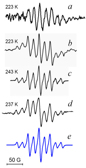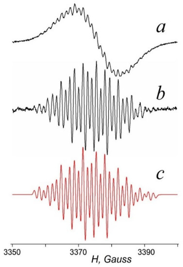 - Gerson, F.; Huber, W. Electron Spin Resonance Spectroscopy of Organic Radicals; Wiley-VCH Verlag GmbH & Co. KGaA: Weinheim, Germany, 2003. [Google Scholar]