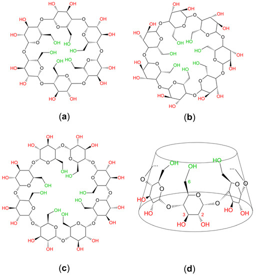 - Jambhekar, S.S.; Breen, P. Cyclodextrins in Pharmaceutical Formulations I: Structure and Physicochemical Properties, Formation of Complexes, and Types of Complex. Drug Discov. Today 2016, 21, 356–362. [Google Scholar] [CrossRef] [PubMed]