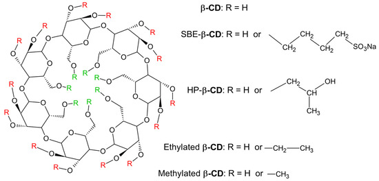 - Schwarz, D.H.; Engelke, A.; Wenz, G. Solubilizing Steroidal Drugs by β-Cyclodextrin Derivatives. Int. J. Pharm. 2017, 531, 559–567. [Google Scholar] [CrossRef]