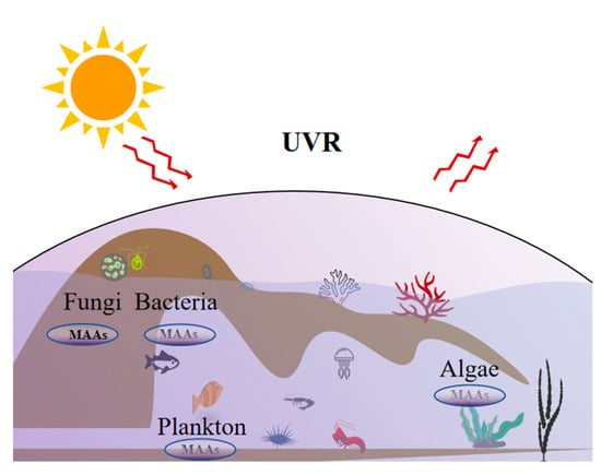 - Hylander, S. Mycosporine-like Amino Acids (MAAs) in Zooplankton. Mar. Drugs 2020, 18, 72. [Google Scholar] [CrossRef]