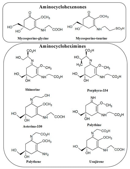 | 6 | Mycosporine-serinol | / | / | Fungi, Cyanobacteria | [62] |