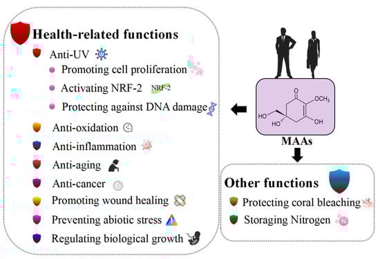 - Singh, A.; Čížková, M.; Bišová, K.; Vítová, M. Exploring Mycosporine-like Amino Acids (MAAs) as Safe and Natural Protective Agents against UV-Induced Skin Damage. Antioxidants 2021, 10, 683. [Google Scholar] [CrossRef]