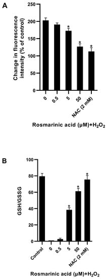 2.2. Effect of Rosmarinic Acid on H2O2-Induced ROS Formation in Fibroblasts