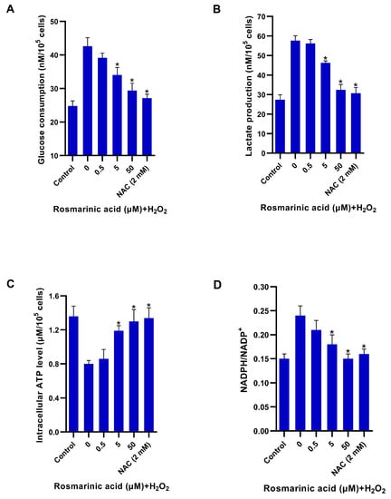 2.3. Modulatory Effect of Rosmarinic Acid on Glycolytic Adaptive Response Induced by H2O2