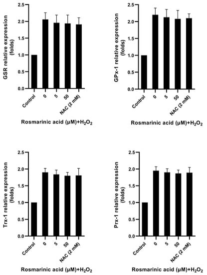 2.4. Effect of Rosmarinic Acid on Glycolytic Enzyme and Antioxidant Genes Expression