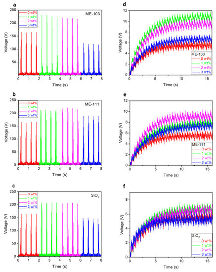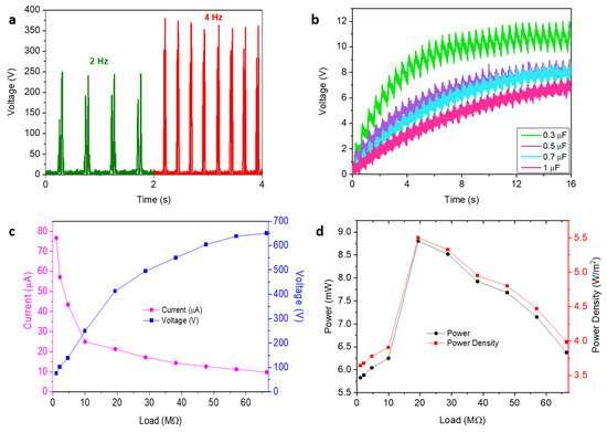 - Chen, J.; Guo, H.; He, X.; Liu, G.; Xi, Y.; Shi, H.; Hu, C. Enhancing performance of triboelectric nanogenerator by filling high dielectric nanoparticles into sponge PDMS film. ACS Appl. Mater. Interfaces 2016, 8, 736–744. [Google Scholar] [PubMed]