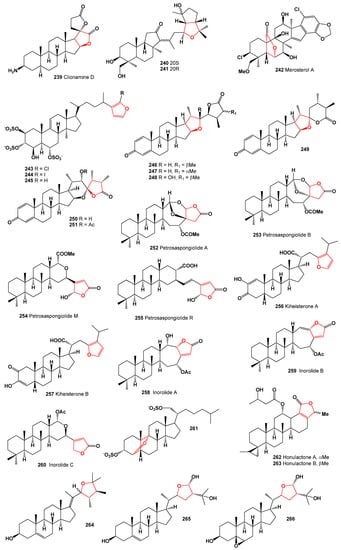 Predicted biological activities of steroids derived from marine sources (239–266).