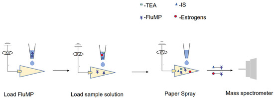 Mass spectrometry (MS) is an analytical technique that can provide qualitative and quantitative information on molecules. However, conventional MS requires complex preprocessing to avoid contamination. Ambient ionization mass spectrometry (AIMS), which was first introduced in 2004 by Cooks et al. [13], overcomes this difficulty and allows for operation in an atmosphere environment with minimal pretreatment. Paper spray ionization mass spectrometry (PSI-MS) is a type of AIMS [14] that combines the advantages of AIMS and electrospray ionization (ESI).