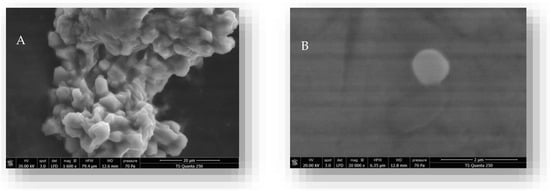 Scanning electron microscopy of CN-NPs (A) and C. verum EO/CN-NPs (B).