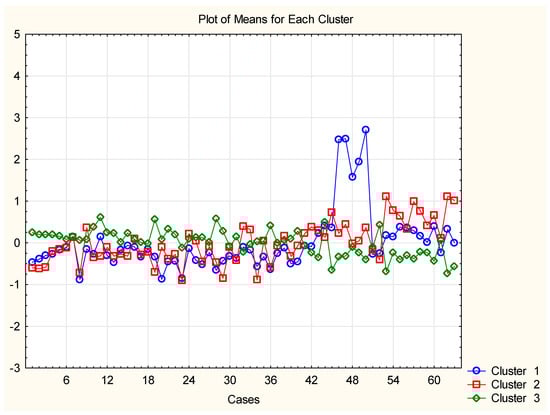 Figure 2 displays the averages for each descriptor of the three identified clusters, effectively demonstrating the differences between them and the descriptors responsible for this partitioning.