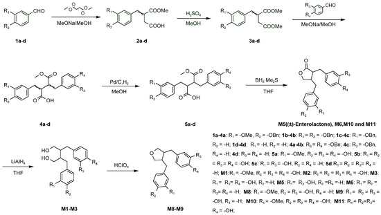 Synthesis scheme of lignan metabolites.