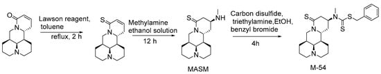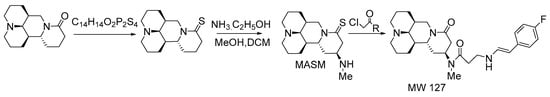- Cheng, X.; Ye, J.; He, H.; Liu, Z.; Xu, C.C.; Wu, B.; Xiong, X.; Shu, X.; Jiang, X.; Qin, X. Synthesis, characterization and in vitro biological evaluation of two matrine derivatives. Sci. Rep. 2018, 8, 15686. [Google Scholar] [CrossRef] [PubMed]