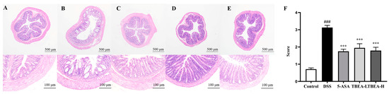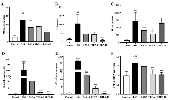 2.5. TBEA Reduces Pro-Inflammatory Cytokine Contents in the Colonic Tissue of UC Mice