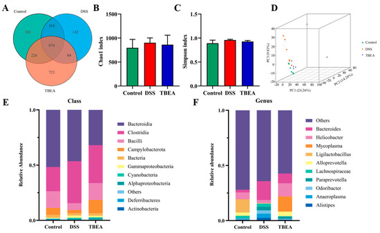 2.7. Influences of TBEA Treatment on Intestinal Flora
