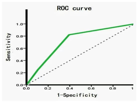 Out of the 28 FTC, 9 (32.1%) were strongly positive and 19 (67.9%) were weakly to moderately positive for FASN. Five (17.9%) iPLAs were strongly positive, 16 (57.1%) were weakly to moderately positive, and 7 (25%) were completely negative for FASN. Out of the 66 FTA, 37 (56.1%) were strongly positive for FASN, 28 (42.4%) were weakly to moderately positive, and one (1.5%) was completely negative. Furthermore, 40 (60.6%) iPLAs were strongly positive, 19 (28.8%) were weakly positive, and seven (10.6%) were negative. Interestingly, we noticed that the metabolic enzyme was significantly higher in the FTA than in the FTC (p = 0.043 and p = 0.0001 in FASN and iPLAs, respectively) (Table 1). Figure 3A,B shows the metabolic enzyme expression in FTC and FTA. The diagnostic potential of FASN and iPLAs was identified using receiver operating characteristic (ROC) curve analysis. The area under the curve (AUC), an accuracy index for evaluating the predicting performance, was 61.4% for FASN (95% confidence interval [CI]: 49.2–73.7%), compared with 71.9% for tissue iPLAs (95% CI: 60.9–83.0%). Subsequently, we combined the two biomarkers into a diagnostic combination; ROC curve analysis showed that the AUC was 73.6% (95% CI: 62.7–84.5%), with a sensitivity and specificity of 82.1% and 60.6%, respectively (Figure 4).