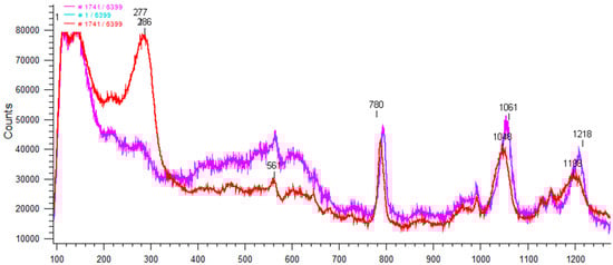 The distribution of band 795 cm−1 in Figure 9 is raw without any postprocessing (smoothing and normalization). It is clearly seen that some spectra recorded at 1500, 1800, and 2200 µm demonstrate greater enhancement than at the other wire position. It is well known that the SERS signal strongly depends on the surface roughness [84,85]. The latter fact determines the significant fluctuation of the Raman signal. The intensity distribution of the band 800 cm−1 for BTA 30 ppm is shown in Figure 9.