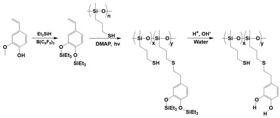 - Heo, J.; Kang, T.; Jang, S.G.; Hwang, D.S.; Spruell, J.M.; Killops, K.L.; Waite, J.H.; Hawker, C.J. Improved Performance of Protected Catecholic Polysiloxanes for Bioinspired Wet Adhesion to Surface Oxides. J. Am. Chem. Soc. 2012, 134, 20139–20145. [Google Scholar] [CrossRef] [PubMed]