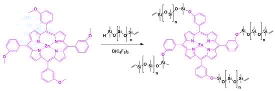 - Feng, M.; Wang, N.; Li, J.; Feng, S.; Xu, X.-D. Facile construction of luminescent silicone elastomers from the compatibilization of porphyrins via the Piers-Rubinsztajn reaction. Colloids Surf. A Physicochem. Eng. Asp. 2022, 642, 128646. [Google Scholar] [CrossRef]