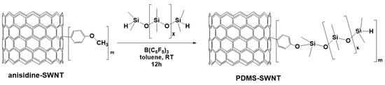 - Chadwick, R.C.; Grande, J.B.; Brook, M.A.; Adronov, A. Functionalization of Single-Walled Carbon Nanotubes via the Piers–Rubinsztajn Reaction. Macromolecules 2014, 47, 6527–6530. [Google Scholar] [CrossRef]