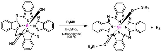 - Szawiola, A.M.; Lessard, B.H.; Raboui, H.; Bender, T.P. Use of Piers–Rubinsztajn Chemistry to Access Unique and Challenging Silicon Phthalocyanines. ACS Omega 2021, 6, 26857–26869. [Google Scholar] [CrossRef] [PubMed]