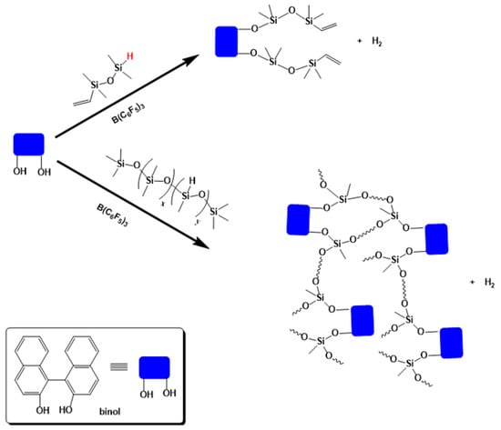 - Zhou, D.; Kawakami, Y. Tris(pentafluorophenyl)borane as a Superior Catalyst in the Synthesis of Optically Active SiO-Containing Polymers. Macromolecules 2005, 38, 6902–6908. [Google Scholar] [CrossRef]