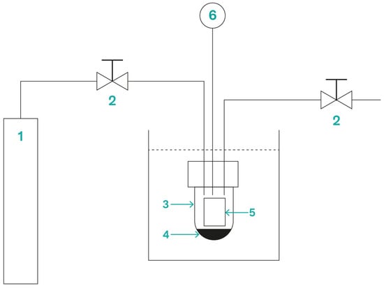 Dyeing of the PET fabric with supercritical CO2. Note: 1—CO2 cylinder, 2—valve, 3—reactor vessel, 4—turmeric, 5—fabric, and 6—pressure gauge. Adapted from Kabir et al. [61].