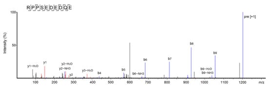 The secondary mass spectrum of peptides RPPSEDEDQE with UPLC-Q-TOF-MS/MS.