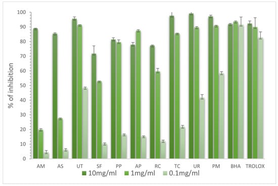 - Singleton, V.L.; Orthofer, R.; Lamuela-Raventós, R.M. Analysis of total phenols and other oxidation substrates and antioxidants by means of folin-ciocalteu reagent. Meth. Enzymol. 1999, 299, 152–178. [Google Scholar]
