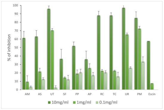 - Studzińska-Sroka, E.; Dudek-Makuch, M.; Chanaj-Kaczmarek, J.; Czepulis, N.; Korybalska, K.; Rutkowski, R.; Łuczak, J.; Grabowska, K.; Bylka, W.; Witowski, J. Anti-inflammatory activity and phytochemical profile of Galinsoga Parviflora Cav. Molecules 2018, 23, 2133. [Google Scholar] [CrossRef]