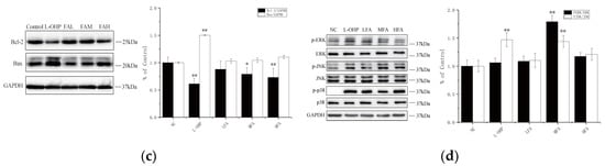 Apoptosis might be accompanied by inflammation and clearance via autophagy. Obviously, with the treatment of FA, the key pathways of apoptosis BAX and BCL-2 are significantly changed, the tumor suppressor-related gene BCL-2 is inhibited, and the apoptosis-promoting gene BAX is enhanced. This change is closely related to the MAPK pathway. JNK and ERK, key proteins of the MAPK pathway, are activated by phosphorylation, and this is even more significantly promoted under the regulation of a medium concentration of FA (