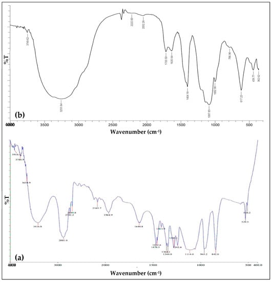 FT-IR spectra of PEG-6000 (a) and Zr0.90Mg0.10O2 after drying at 120 °C (b) [1].