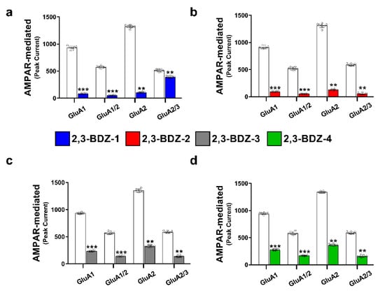 2.3. The 2,3-BDZ Compounds Substantially Inhibited the GluA2 Subunit