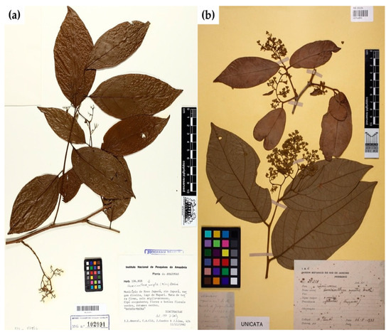 Botanical recognition of Humirianthera ampla (a) and Humirianthera rupestris (b). Source: [36,37].