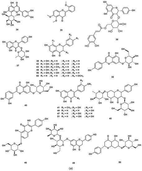 (a) Chemical structures of flavonoids identified in GSF extracts. (b) Chemical structures of additional flavonoids identified in GSF extracts.