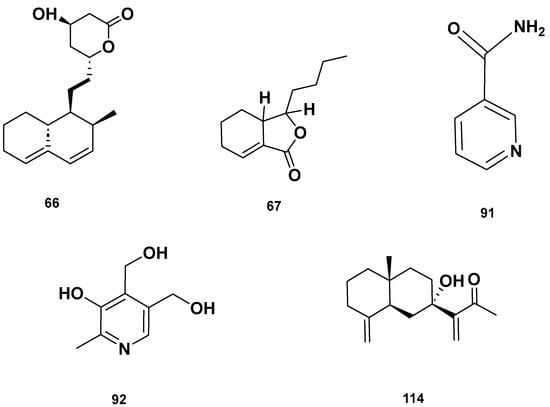 Lactone (67–68), Vitamin B (92–93) and polycyclic (114) metabolites in the GSF extracts.