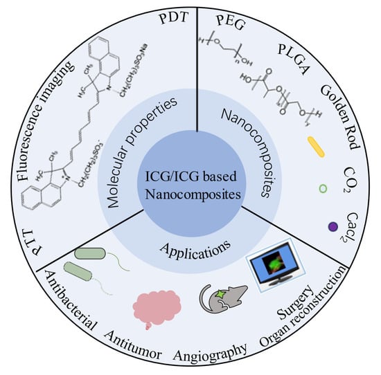 - Han, Y.-H.; Kankala, R.K.; Wang, S.-B.; Chen, A.-Z. Leveraging Engineering of Indocyanine Green-Encapsulated Polymeric Nanocomposites for Biomedical Applications. Nanomaterials 2018, 8, 360. [Google Scholar] [CrossRef] [PubMed]