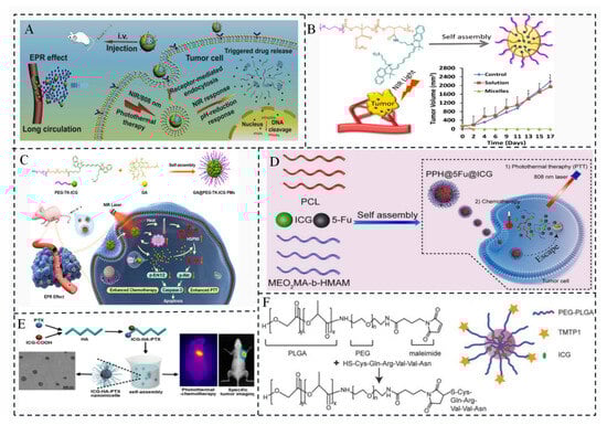 - Yang, L.; Hou, X.; Zhang, Y.; Wang, D.; Liu, J.; Huang, F.; Liu, J. NIR-Activated Self-Sensitized Polymeric Micelles for Enhanced Cancer Chemo-Photothermal Therapy. J. Control. Release 2021, 339, 114–129. [Google Scholar] [CrossRef]