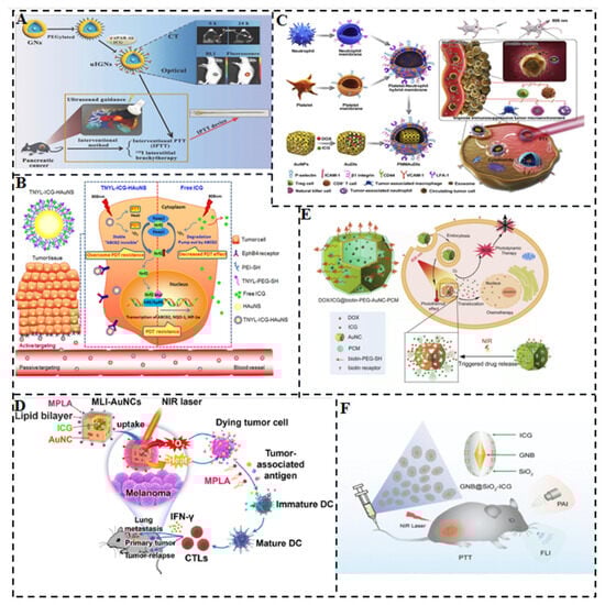 - Li, W.; Zhang, H.; Guo, X.; Wang, Z.; Kong, F.; Luo, L.; Li, Q.; Zhu, C.; Yang, J.; Lou, Y.; et al. Gold Nanospheres-Stabilized Indocyanine Green as a Synchronous Photodynamic-Photothermal Therapy Platform That Inhibits Tumor Growth and Metastasis. ACS Appl. Mater. Interfaces 2017, 9, 3354–3367. [Google Scholar] [CrossRef]
