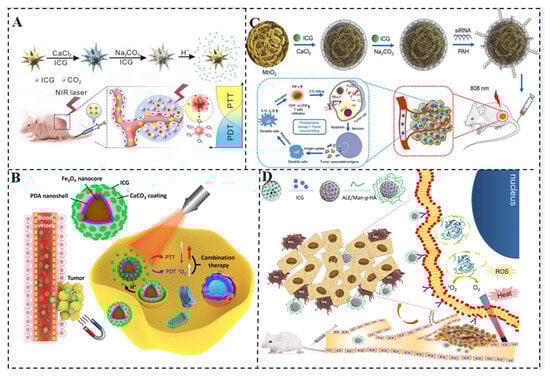 - Huang, X.; Wu, J.; He, M.; Hou, X.; Wang, Y.; Cai, X.; Xin, H.; Gao, F.; Chen, Y. Combined Cancer Chemo-Photodynamic and Photothermal Therapy Based on ICG/PDA/TPZ-Loaded Nanoparticles. Mol. Pharm. 2019, 16, 2172–2183. [Google Scholar] [CrossRef] [PubMed]