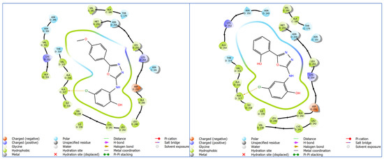 The E. coli DNA gyrase complex with 2-oxo-1,2-dihydroquinoline derivative’s X-ray crystal structure with a resolution of 2.40 Å, R-value 0.199 (obs.), was retrieved from protein data bank (https://www.rcsb.org/structure/6KZV accessed on 16 March 2023) [48]. The standard molecular docking protocol was used for docking studies [49].