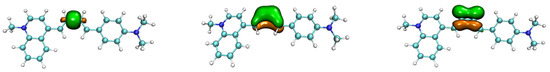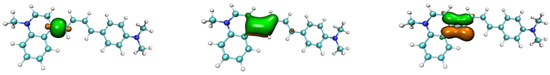 - The corresponding ground and excited state of different probe conformation’s structure optimization and vibrational frequency analysis on the stable probe conformations’ structure obtained from step (3) were conducted by using the ORCA program [39] under CAM-B3LYP/def2-TZVPD, a functional which was testified to be suitable for the excited state optimization with charge transfer character, with D3 dispersion correction and GCP correction to remove artificial overbinding effects from BSSE [40,41,42,43,44,45]. The functional and basis set combination wB2GP-PLYP/def2-TZVPD was used in a single point energy calculation to obtain the free energy with high precision [46,47,48,49,50,51,52,53,54]. Most of the figures in this work were rendered by means of VMD 1.9.3 software [55] and the analyses were finished by using the Multiwfn 3.8(dev) code [56].
