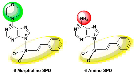Structures of biologically active (E)-6-morpholino-9-(styrylsulfonyl)-9H-purine (6-Morpholino-SPD) and (E)-6-amino-9-(styrylsulfonyl)-9H-purine (6-Amino-SPD).