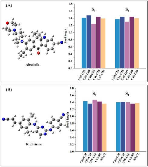 | Rilpivirine | 21.8 a 159.0 b | 756.0 a 744.6 b | S0→S1 a (HOMO → LUMO) S0→S1 b (HOMO → LUMO) | 0.546 b |