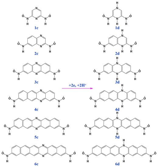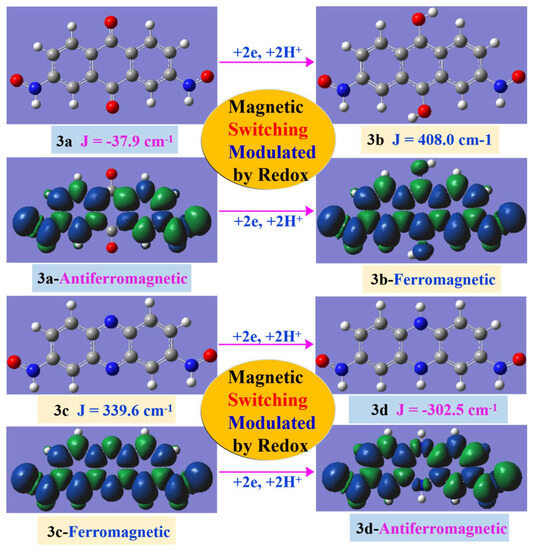 - Zhang, F.Y.; Song, X.Y.; Bu, Y.X. Redox-Modulated Magnetic Transformations between Ferro- and Antiferromagnetism in Organic Systems: Rational Design of Magnetic Organic Molecular Switches. J. Phys. Chem. C 2015, 119, 27930–27937. [Google Scholar] [CrossRef]