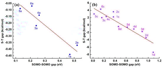 - Zhang, G.B.; Li, S.H.; Jiang, Y.S. Effects of Substitution on the Singlet-Triplet Energy Splittings and Ground-State Multiplicities of m-Phenylene-Based Diradicals: A Density Functional Theory Study. J. Phys. Chem. A 2003, 107, 5573–5582. [Google Scholar] [CrossRef]