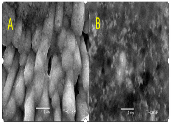 SEM further characterized the morphology of the AgNPs. C. gigantea AgNPs were 65 nm with a cubic structure, and M. leaiana was amorphous (Figure 7). According to the FTIR analysis, varying amounts of reducing and capping agents present in the mushroom extract yield diverse shapes and sizes of AgNPs. The shape of cubic-form silver NPs has been examined in previous research [24]. The extracts of Boerhaavia diffusa and Dryopteris crassirhizoma rhizomes operated as both reducing as well as capping agents in the green AgNPs. In less than 30 min, a cubic structure of Boerhaavia diffusa and Dryopteris NPs with a standard particle size of 5–65 nm was synthesized in the presence of sunlight/LED light [25].