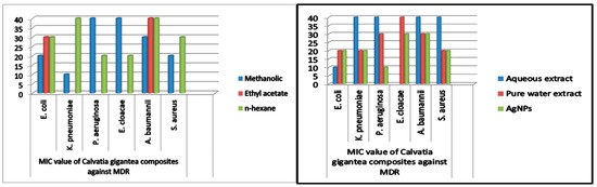 MIC value of Calvatia gigantea composites against MDR bacteria.