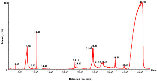GC-MS Chromatogram of M. jalapa root extract.