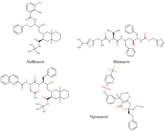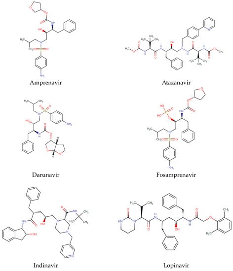 Chemical structures of HIV-1 protease inhibitors in clinical use.